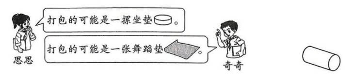 8.二(1)班更换活动课场地时,打包的物品形状如下右图所示。下面两名同学中,( )说得对。