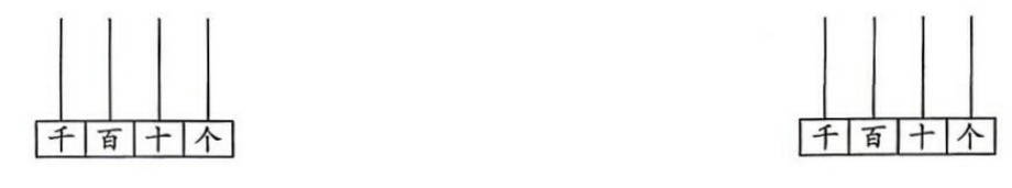 六、5505 5105 5055 5015 解析:算盘上1颗上珠表示五,1颗下珠表示一。拨出的千位上是5,个位上也是5,则千位上拨1颗上珠,个位上拨1颗上珠,共用去了2颗珠子,还剩下3-2=1(颗)珠子。这颗珠子可以拨百位上的上珠或下珠,组成的四位数是5505或5105,也可以拨十位上的上珠或下珠,组成的四位数是5055或5015,则从大到小排列是5505>5105>5055>5015。