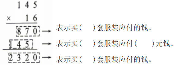7.王老板进货,买了16套服装,每套服装145元。根据条件完成填空。