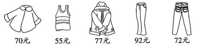 4.小花去服装市场批发衣服。下列衣服各买12件共需要多少钱?(5分)
