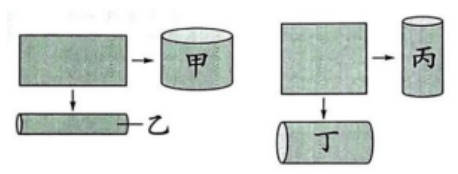 C.卷成的圆柱丁最粗,圆柱乙最细