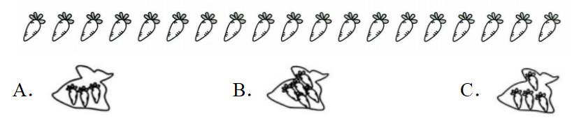 4.将19根萝卜按照方式( )包装,剩余的最少。