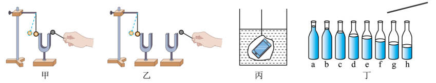 (5)如图丁所示,在8个相同玻璃瓶中灌入不同高度的水可以制成水瓶琴,当用相同力度敲击瓶子g和瓶子h时发现两个声音听起来差别不大,为了更好的演奏效果,可以对瓶中水量进行调节,具体的操作是______。