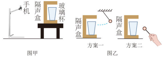 (1)现有如图乙所示的两种方案,方案一:将悬挂在细线下的小球拉到同一高度由静止开始释放去敲击玻璃杯;方案二:手拿小锤,用相同的力度敲击玻璃杯。这两种方案都是为了控制声音的_____相同;对比,方案_____(选填“一”或“二”)更合理,理由是___________________________________;