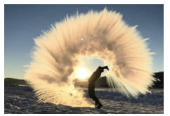 7. 严寒有时会给人们带来奇特的体验,小明注意到“泼水成冰”这一现象需要滚烫的开水在零下30℃以下的极寒环境中才能成功,使用冷水无法得到同样的效果。用物理知识进行解释:由于______,开水能够在短时间内产生大量的水蒸气,水蒸气遇强冷会迅速______(填物态变化名称)成小冰晶,同时热水相比于冷水更易甩成小水滴,这些小水滴遇冷会______(填物态变化名称)成冰,最终才能呈现如图所示的效果。