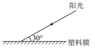 9. 如图所示,阳光照射在透明塑料膜局部一个近似平整的表面,请你通过作图画出对应的反射光线,并标出反射角的大小。