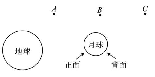 23. 我国能前往月球背面采集样品,是因为有“鹊桥”中继卫星为探月任务提供了强有力的通信支持。如下图所示,请你为“鹊桥”选址,将其位置选定在______(选填“A”“B”或“C”)点,可以实现地面指挥中心与月球背面的通信中转。